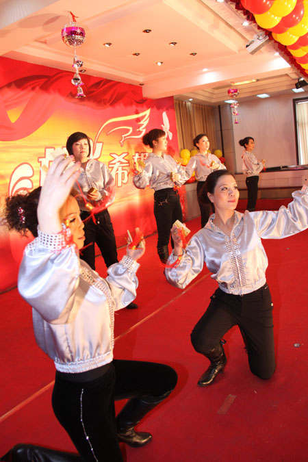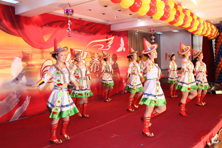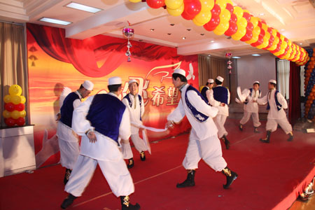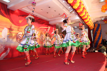 團(tuán)拜會(huì)上,還為大家表演了精彩的文藝節(jié)目,這些節(jié)目都是由公司員工及員工子弟表演。