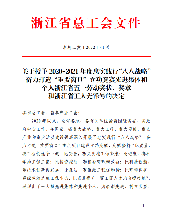 4月27日,我司新建浙江麗水機(jī)場(第一批)02 標(biāo)段項(xiàng)目部榮獲“浙江省工人先鋒號”稱號。