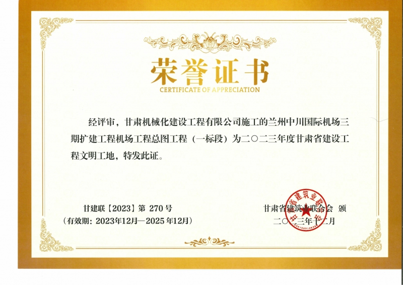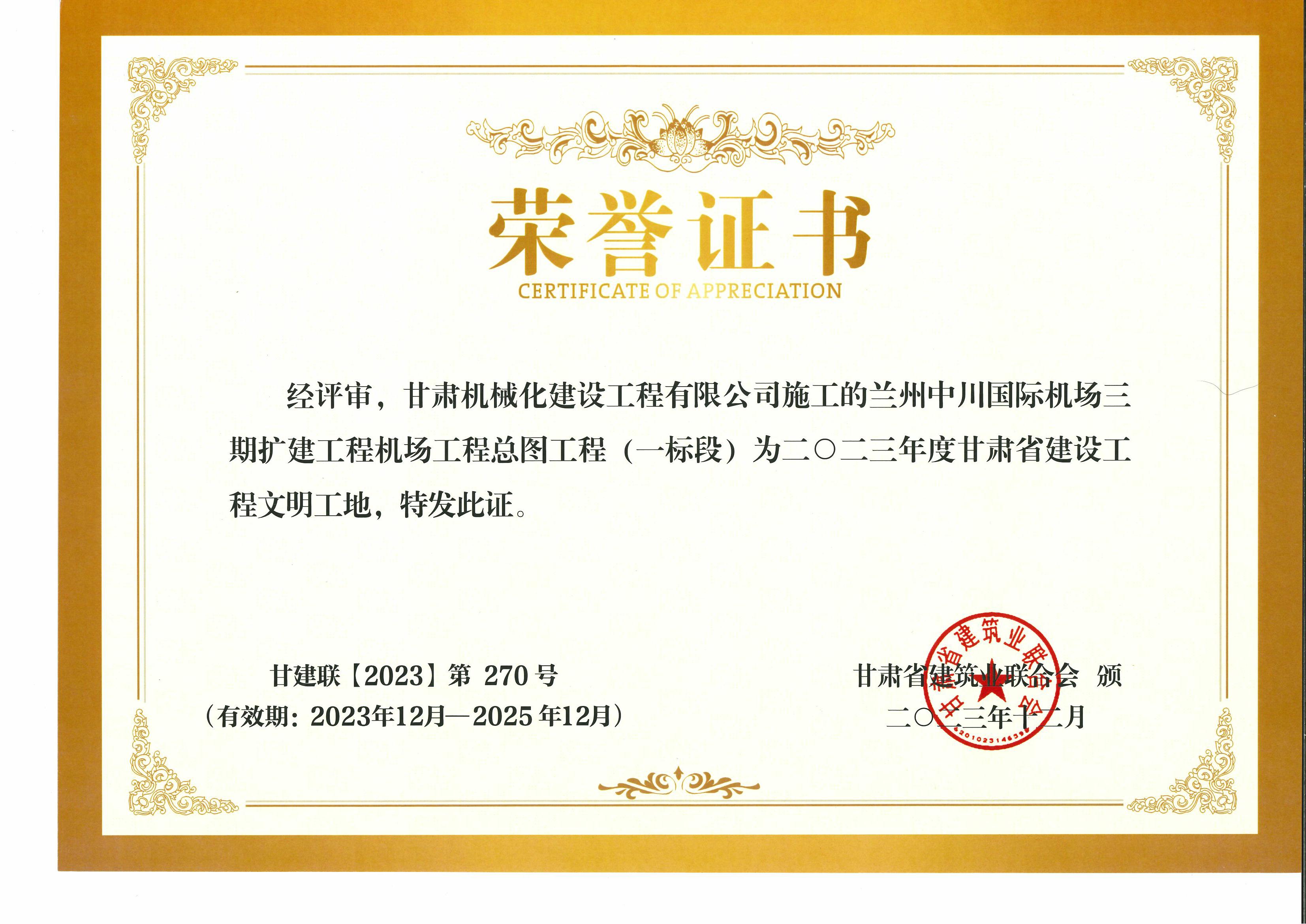 2023年度甘肅省建設(shè)工程文明工地 蘭州中川國(guó)際機(jī)場(chǎng)二期擴(kuò)建工程機(jī)場(chǎng)工程總圖工程 (一標(biāo)段)