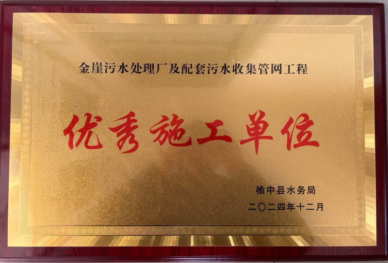 榆中縣黃河流域宛川河金崖污水處理廠及配套污水收集管網工程施工 -優(yōu)秀施工單位